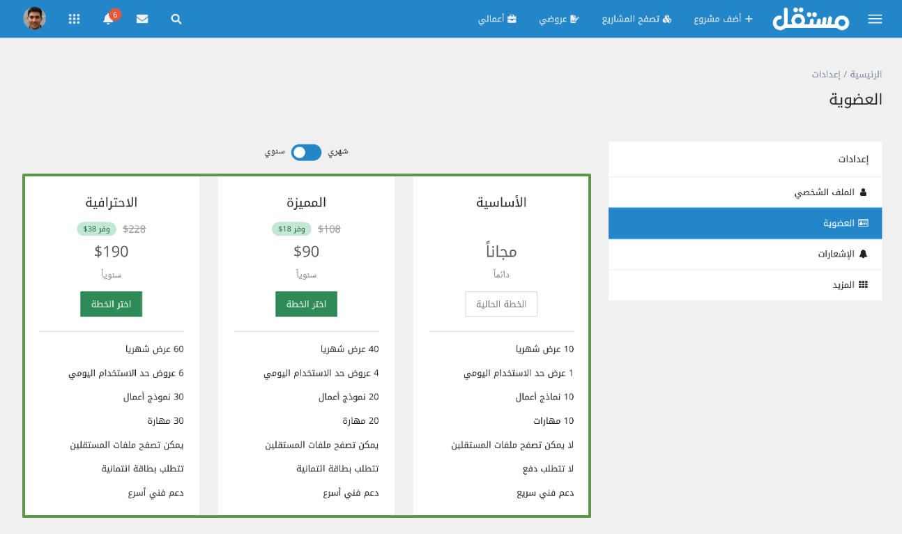 وإذا كان مستوى حسابك احترافياً فبإمكانك الترقية لإحدى خطط عضوية مستقل الجديدة والتي تتيح لك عدد عروض أكبر يساعدك على الوصول للمزيد من العملاء وزيادة الدخل.