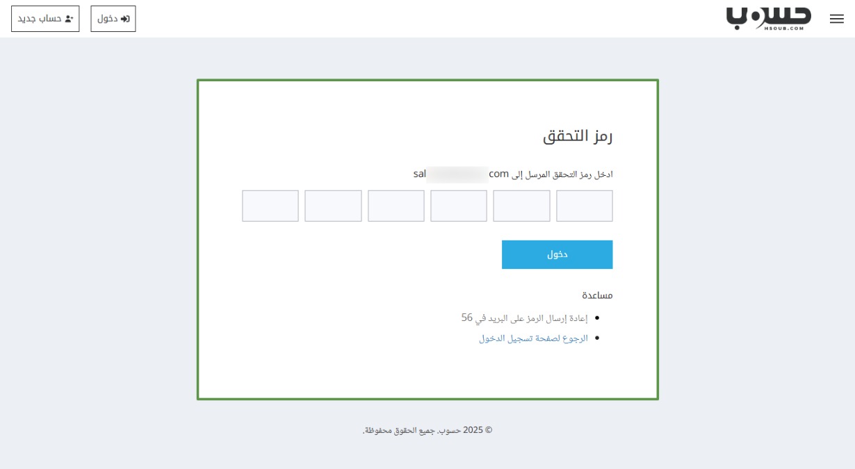سيتم إرسال رمز تحقق إلى بريدك الإلكتروني المستخدم في إنشاء الحساب. قم بإدخاله في المكان المخصص بصفحة التحقق.